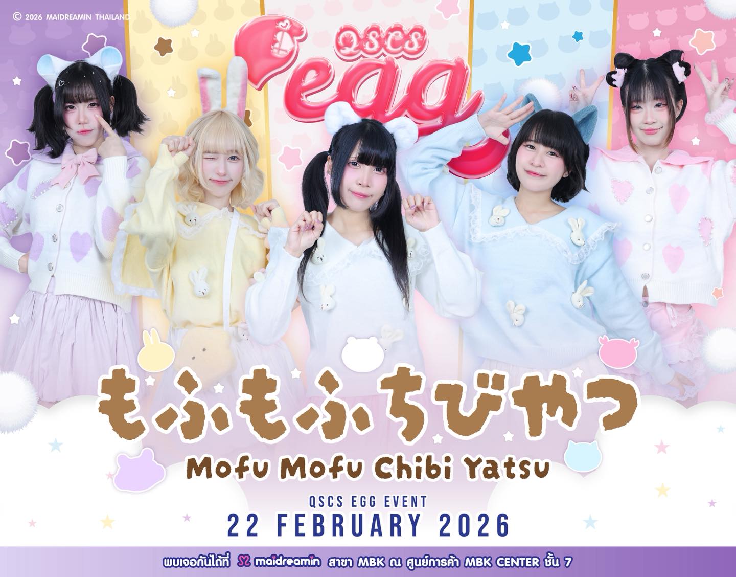 ปุริ๊ง~✨ ปุริ๊ง~✨ ประกาศ QSCS egg Event ประจำเดือนกุมภาพันธ์ 2026⭐️ ต้อนรับเดือนแห่งความรักด้วยความนุ่มฟูวววว~ [ Mofu Mofu Chibi Yatsu (もふもふちびやつ) ] สาวน้อยตัวตะเร้กสีหวานนุ่มฟูววมสุดน่ารัก!!~💕 มาพบกับสาวน้อยสุดป่วนและแสนน่ารักได้ที่ ได้ที่ สาขา