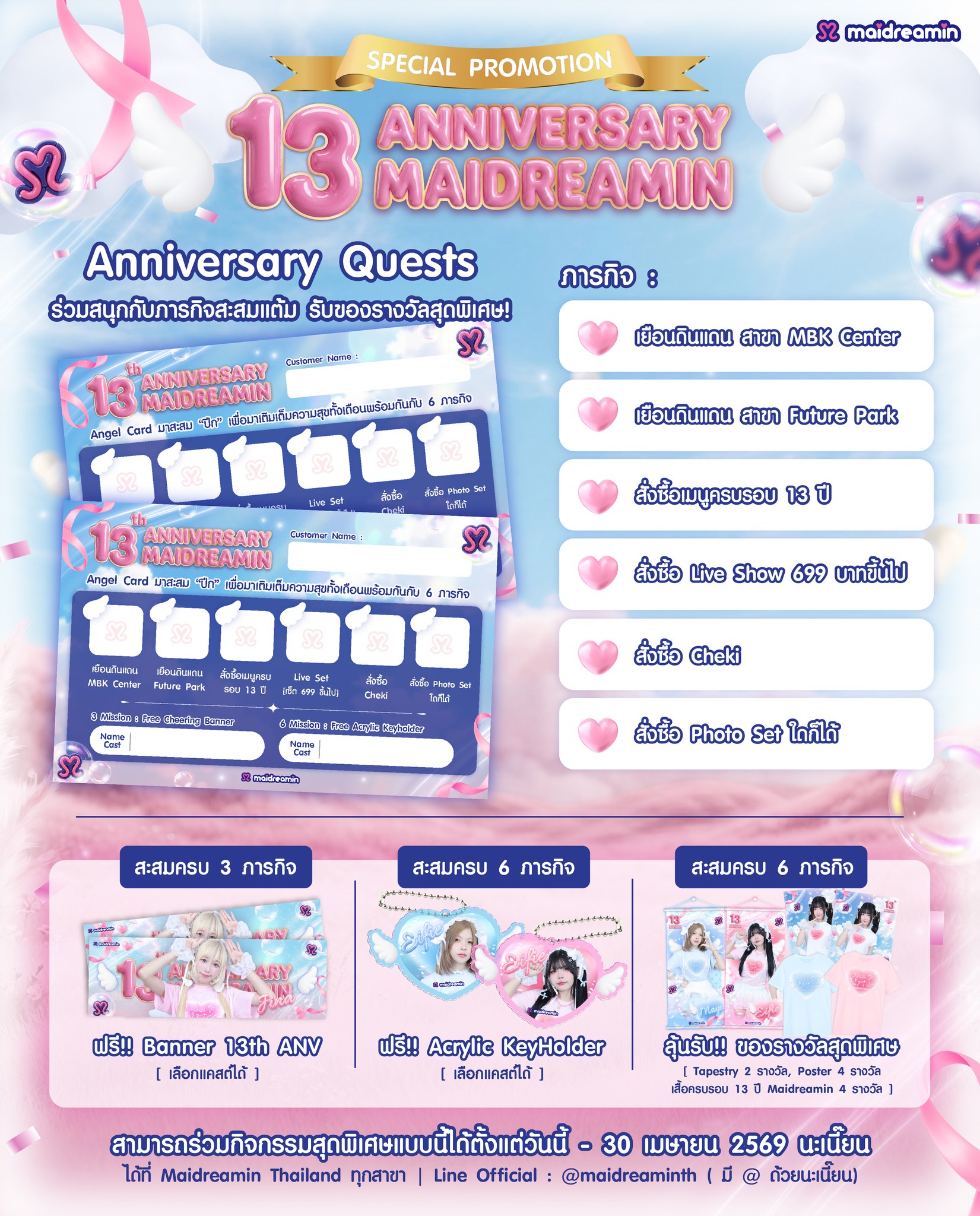 ปิ๊งป่อง~✨ วันพรุ่งนี้เรามีนัดกันกับงาน Anniversary Event ของ Akiko-chan กันนะค้า💕 มาร่วมแสดงความยินดีให้กับอากิโกะจังพร้อมกับโปรโมชั่นพิเศษมากมาย❤ ❤Promotion 1❤ - ใบเสร็จครบ 1,500บาท รับสิทธิ์เล่นเกมลุ้นรับของรางวัล รูป 8x12 ในชุดเมด 2ใบ ❤Promotion 2❤