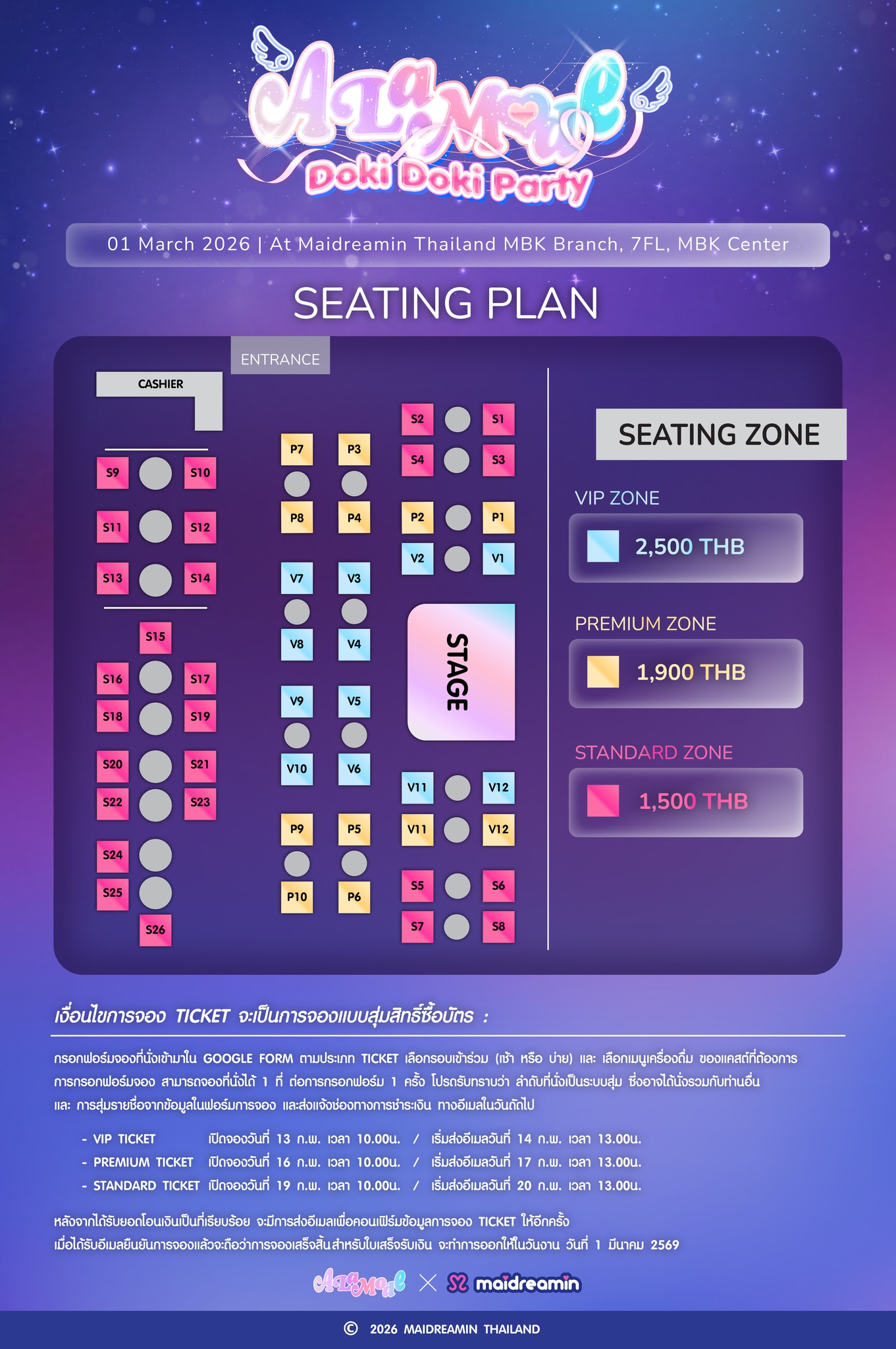 โปรดรับทราบว่า ลำดับที่นั่งเป็นระบบสุ่ม ซึ่งอาจได้นั่งรวมกับท่านอื่น