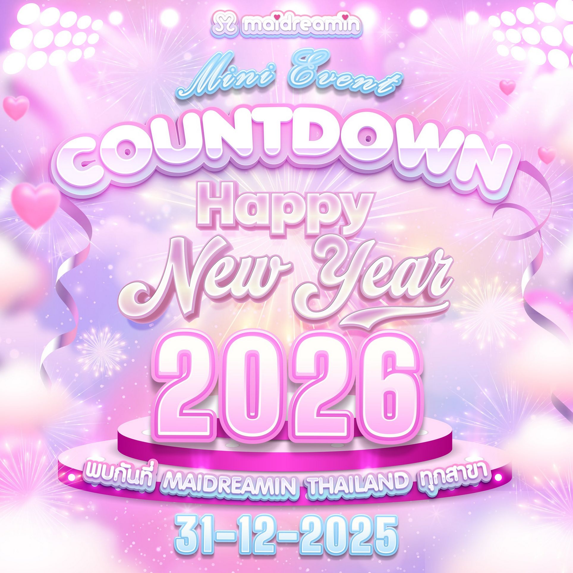 ปิ๊งป่อง 💗 ✨ในวันสิ้นปี 2025 นี้ ขอเชิญนายท่านและคุณหนูทุกท่านพบกับ Mini Event Countdown💕 ส่งท้ายปี ร่วมกับน้องเมดที่ดินแดนแห่งความฝันทั้ง 2 สาขากันเถอะเนี้ยน! 💕 ธีมรอบนี้จะเป็นอะไรมาลุ้นกัน❣️ 💕 มีกิจกรรมสนุกสนานมากมายรออยู่ด้วยล่ะ❣️