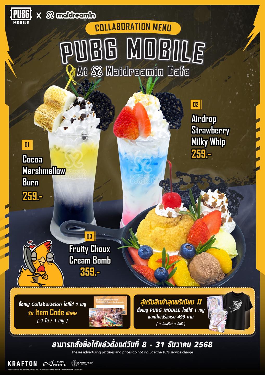 📅 8 – 31 ธ.ค. พบกับเมนูและโปรโมชั่นสุดพิเศษและของที่ระลึกสำหรับแฟน ๆ PUBG MOBILE 🎁