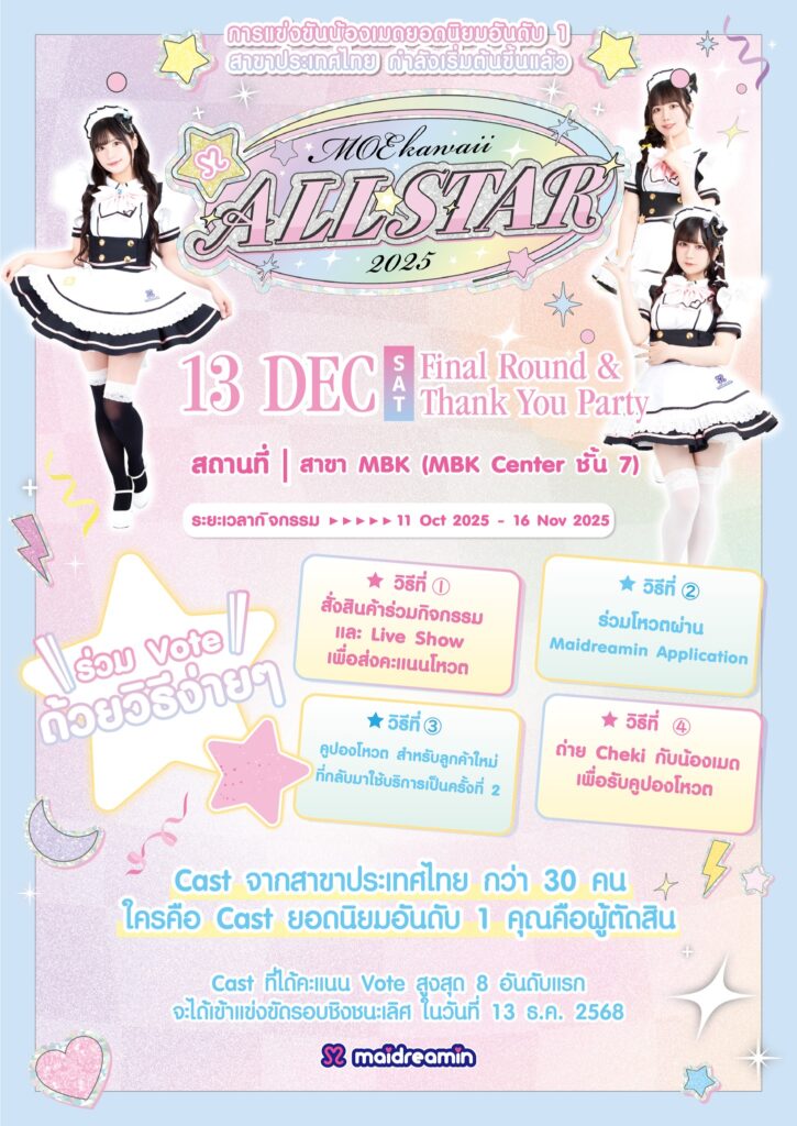 ปิ๊งป่อง📣 กิจกรรมคัดเลือกน้องเมดยอดนิยมอันดับ 1 ประจำปี 2025 กำลังจะกลับมาอีกครั้ง~ 🎉🥳