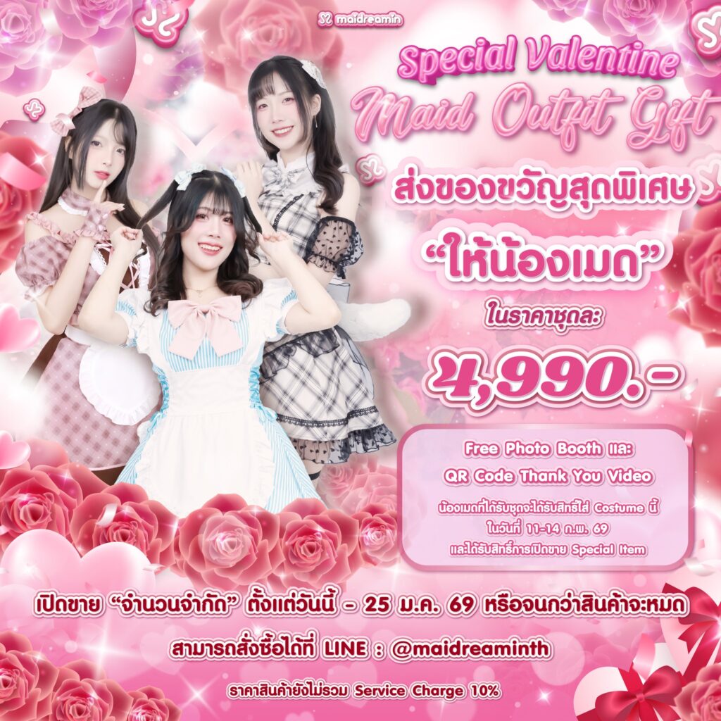 พิเศษสำหรับนายท่านคุณหนูที่สั่งซื้อของขวัญ Valentine Costume ให้น้องเมด จะได้รับ Photo Booth ของน้องเมดในชุดคอสตูมนี้ พร้อม Qr Code Thank you Video ในภาพ